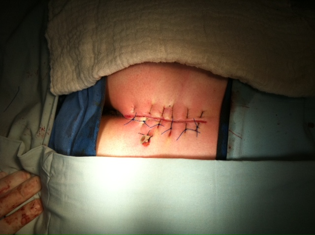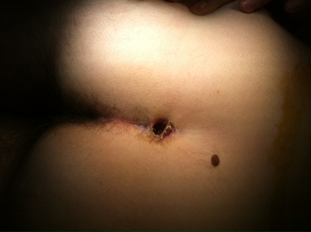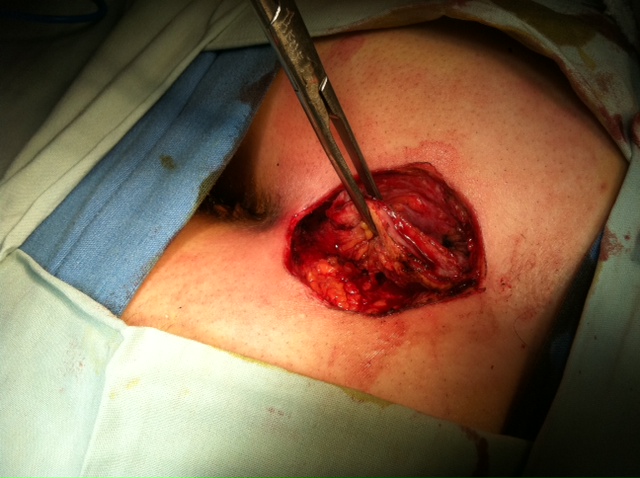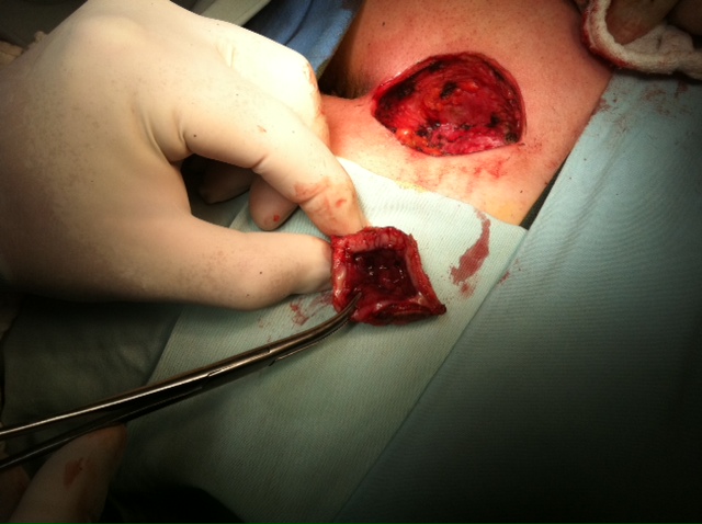 La herida resultante es de considerable tamaño y tiene bordes escarpados, habiendo diversas técnicas para la reconstrucción. La sutura primaria se utiliza, si el paciente está debidamente preparado con antibióticos, si el proceso inflamatorio se ha controlado y si se encuentra tejido sano que permita la sutura. La hemostasia es cuidadosa, y se evita dejar espacios o huecos para evitar la acumulación de sangre, líquido y/o la formación de absceso nuevamente. En este caso se dejó una canalización que contribuye a que no se produzcan estas complicaciones. Adecuadamente tratados estos pacientes, tienen una evolución favorable, con una recidiva o recurrencia baja.